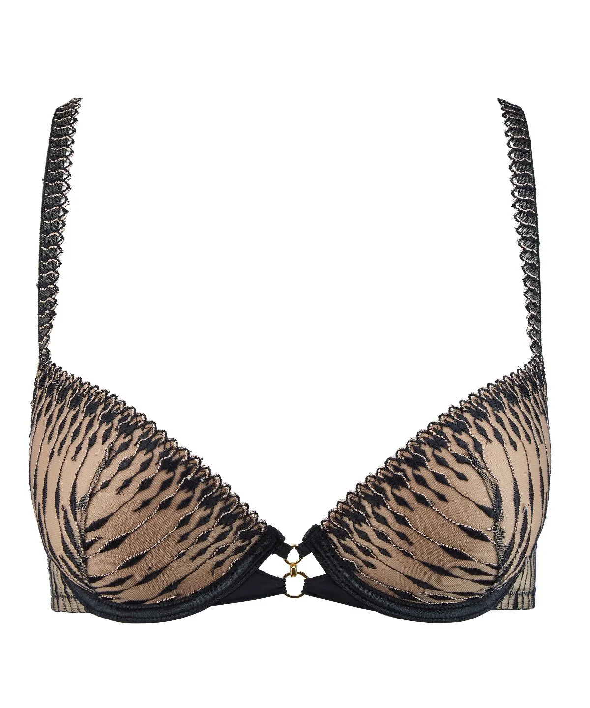 - Bijou en or bronze (anneaux doubles ou triples selon les formes) qui sublime l’entregorge du soutien-gorge