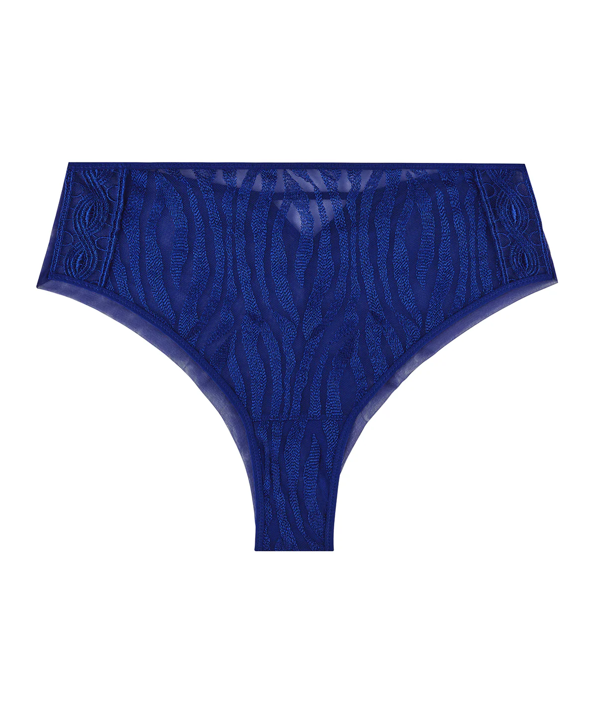 Déployant sa broderie zébrée jusqu’à la taille pour une silhouette affinée, la culotte très haute Wild Pulse allie confort et séduction. Dans le dos, entièrement en tulle, elle offre une coupe string qui sublime sensuellement le galbe des fesses et une découpe très sexy révélant subtilement le creux des reins.