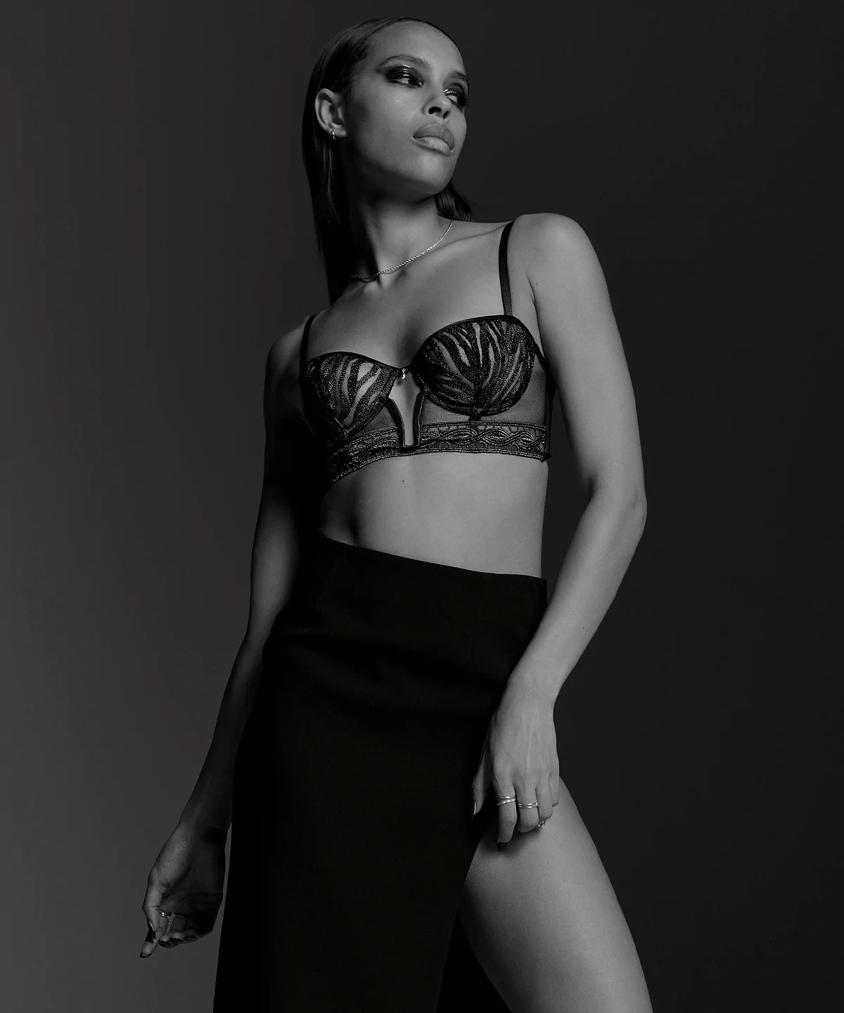 Offrant confort et maintien optimal jusqu’au bonnet F, le bustier Wild Pulse associe, devant, une broderie zébrée sexy, un tulle transparent délicat et une bande graphique moderne, le tout rehaussé par une découpe très sensuelle à l’entregorge. Derrière, il présente un dos largement ouvert pour une silhouette audacieuse et séduisante.